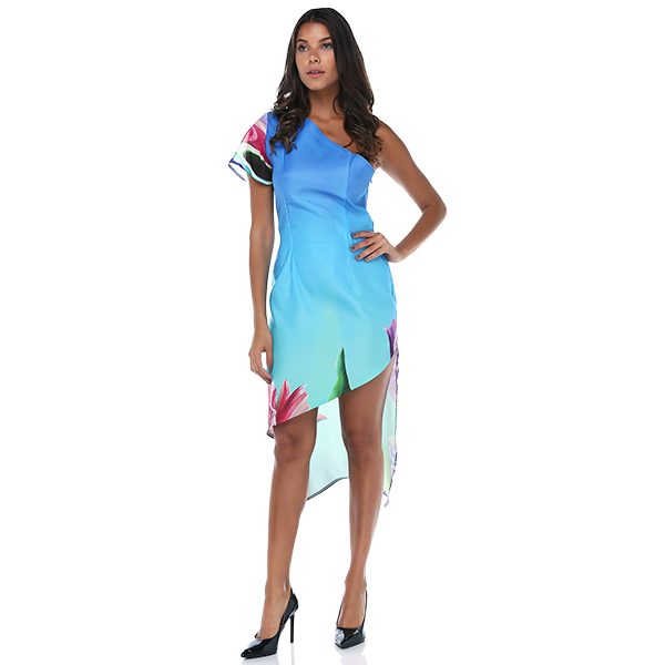Yırtmaçlı göğüs dekolteli ipek saten elbise