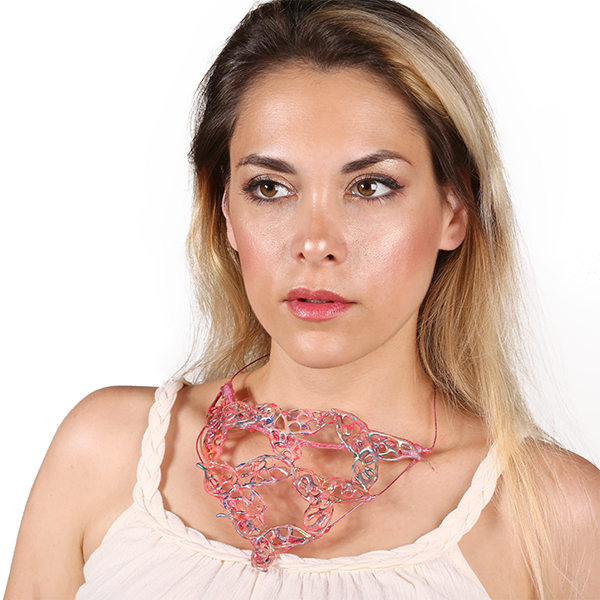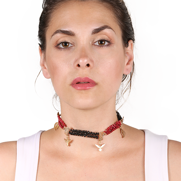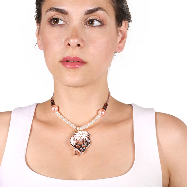 Tamamı el örgüsü kum boncuk ve figüratif kolye