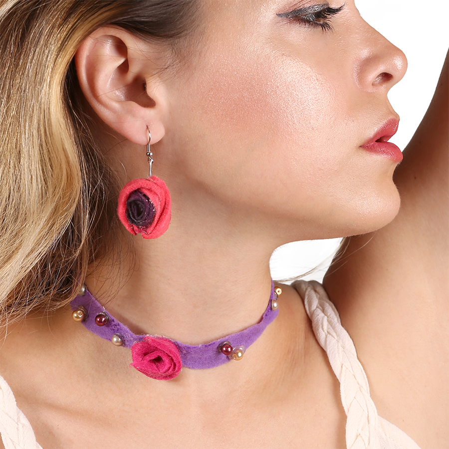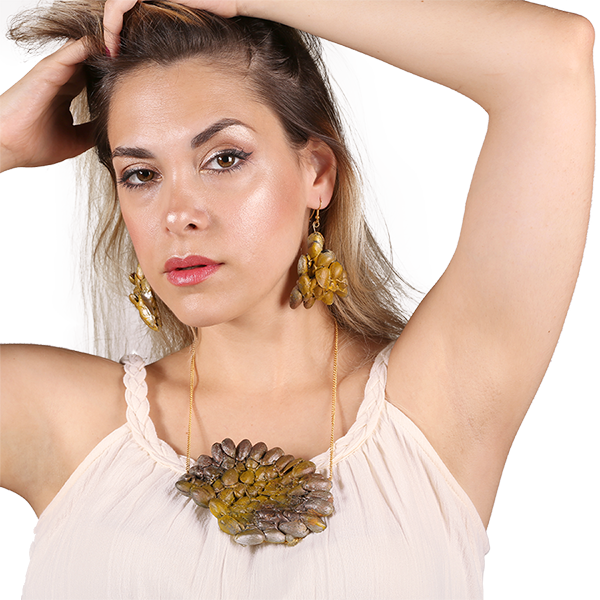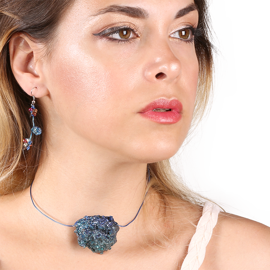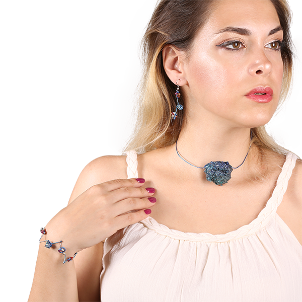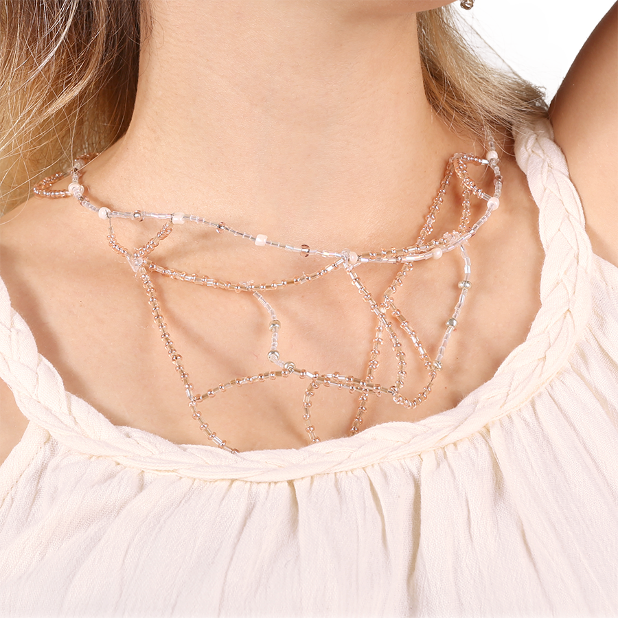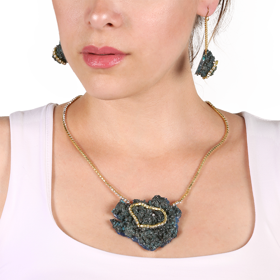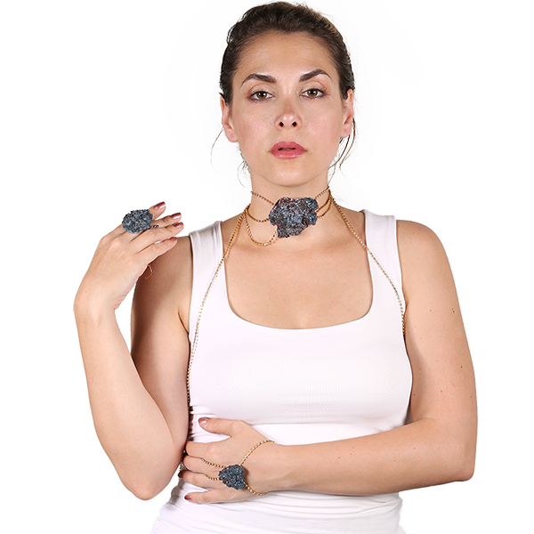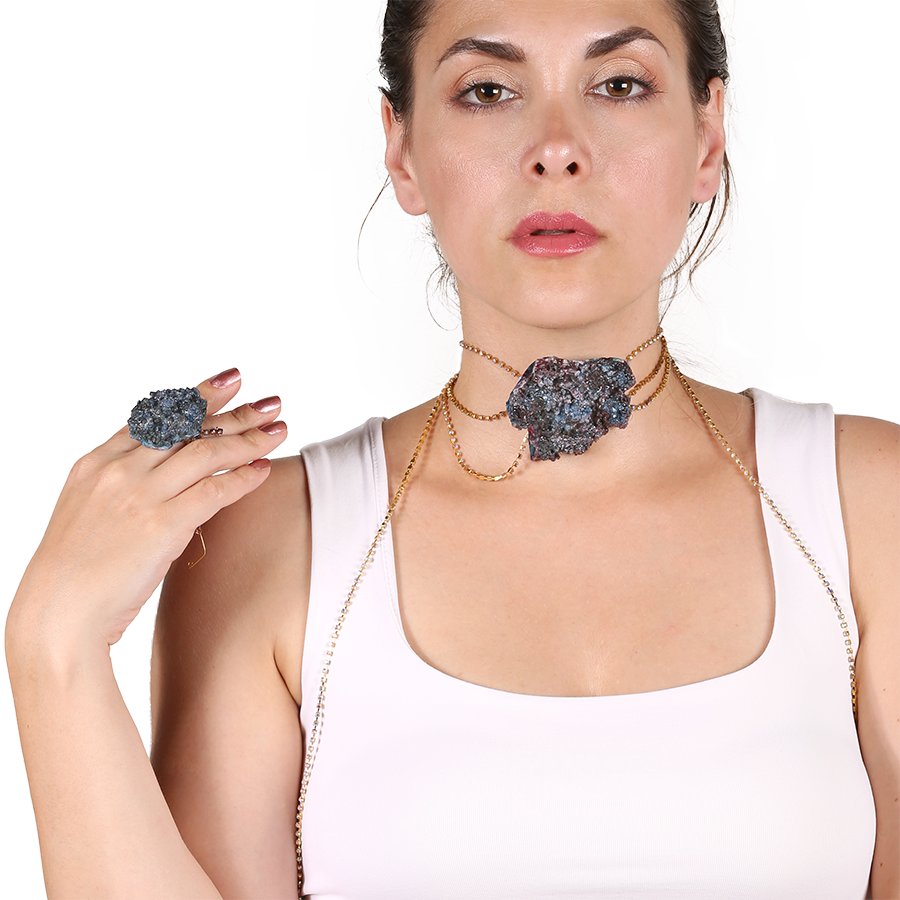 Boyun ve göğüs kısmı taşlı zincirli kristal kolye