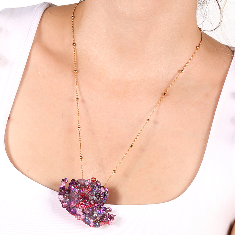 Swarovski kalp taşlı zincirli kristal kolye/p>