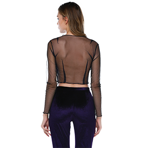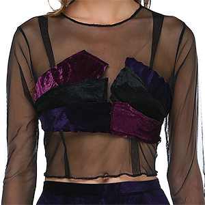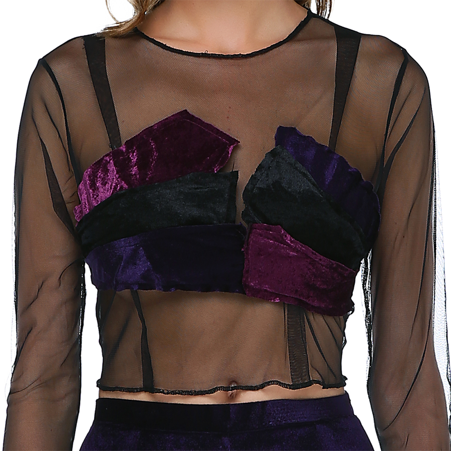 Farklı tasarımıyla kadife kumaş detaylı tül bluz