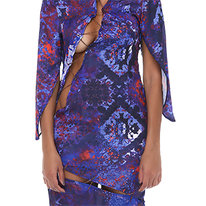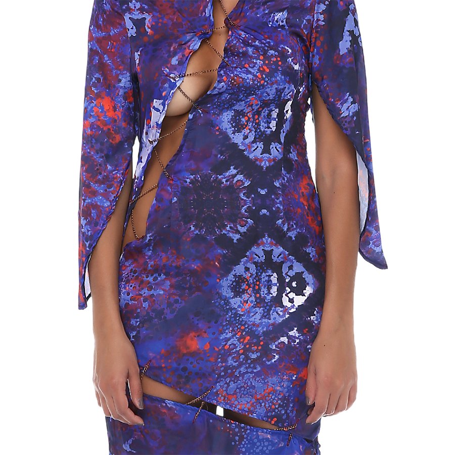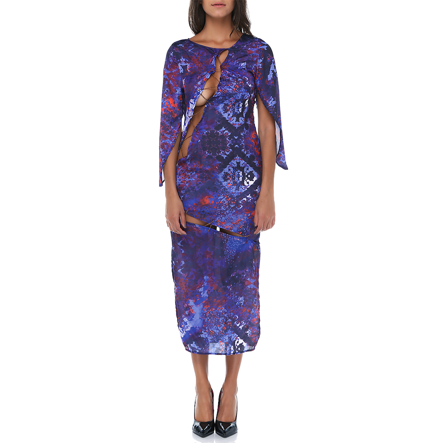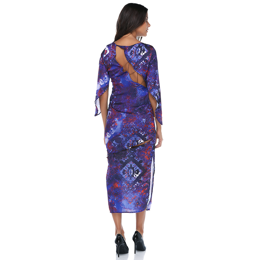 Göğüs ve sırt bölgesi yırtmaçlı elbise