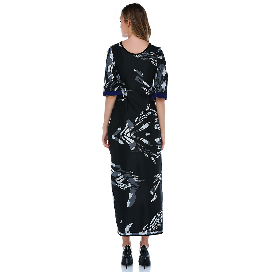 Kadife biyeli truvakar kol önü kısa arkası uzun elbise