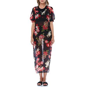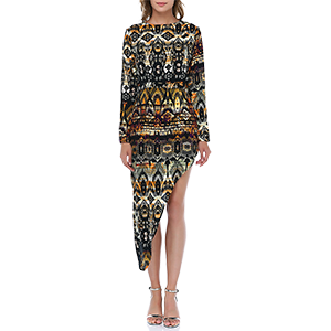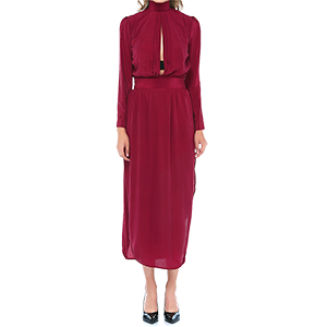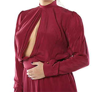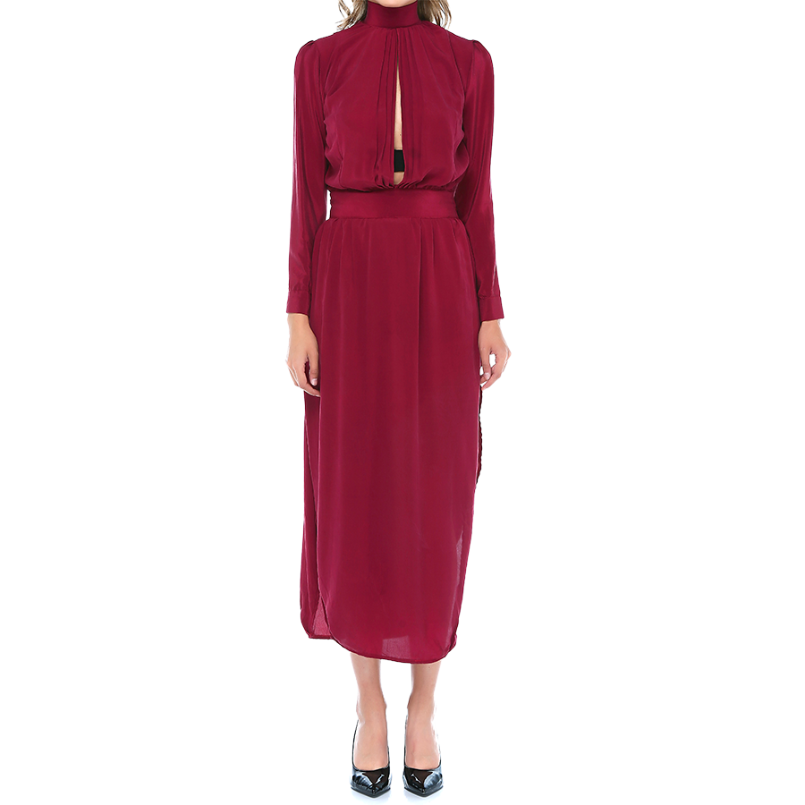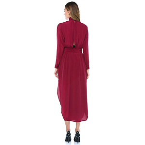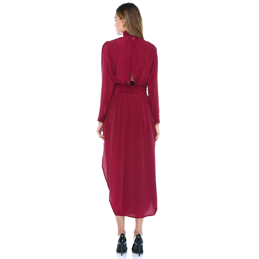 Göğüs ve sırt dekolteli yırtmaçlı boyundan bağlı elbise