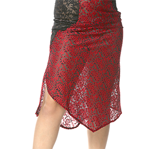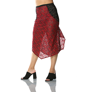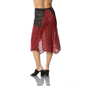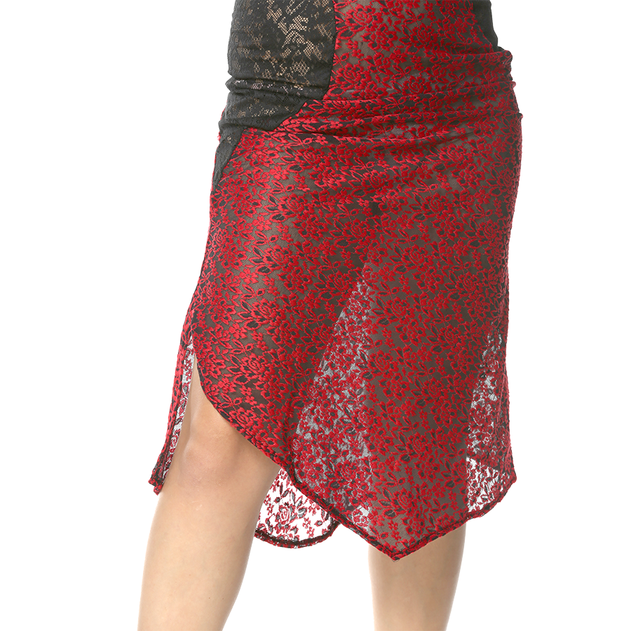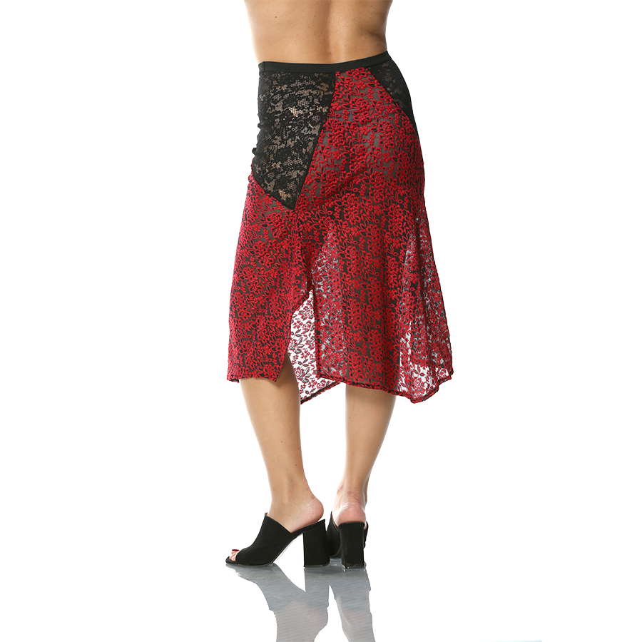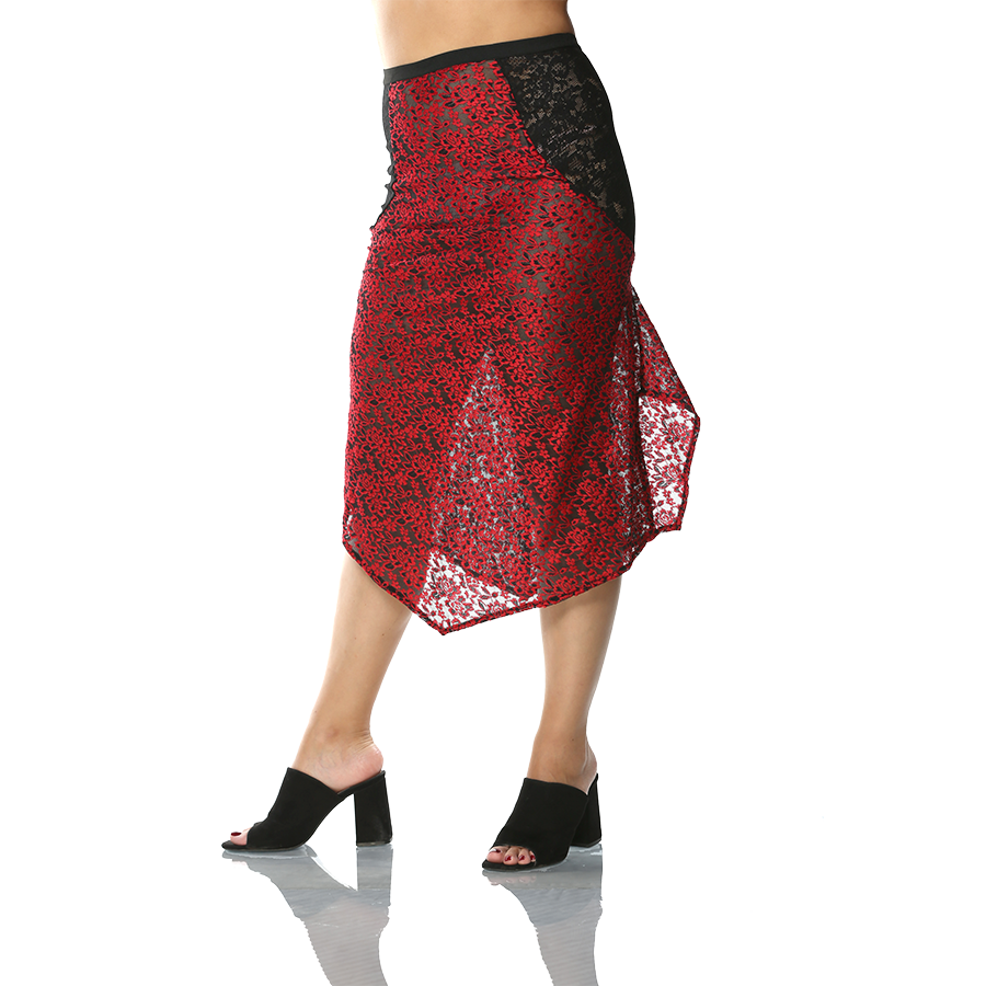 Asimetrik kesim iki farklı dantel kumaştan oluşan etek