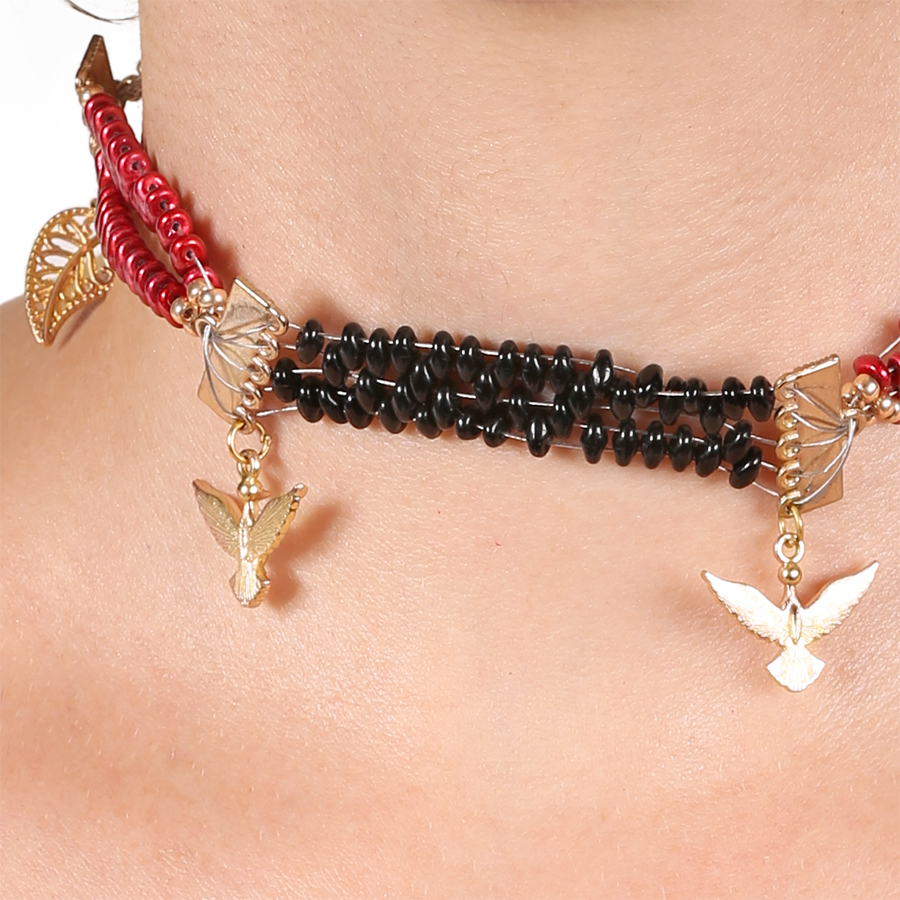 Tamamı el örgüsü kum boncuk ve figüratif kolye
