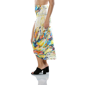 İpek kumaş göbeği açık yırtmaçlı etekli takım