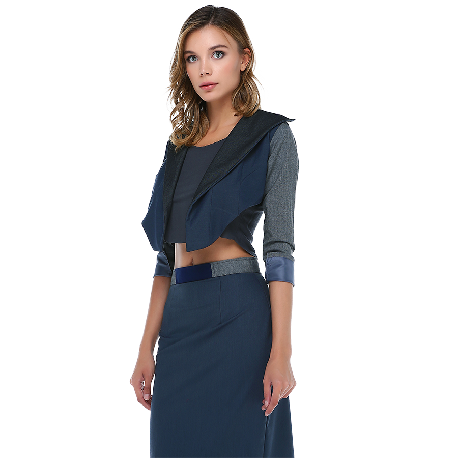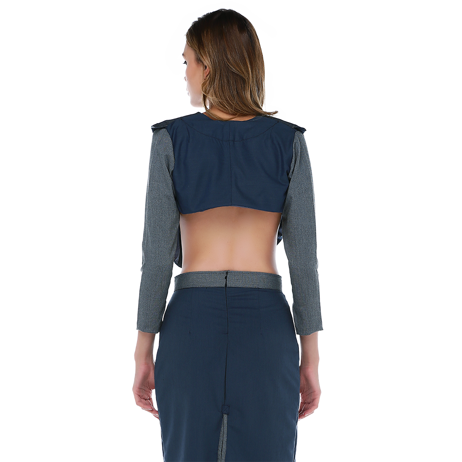 Asimetrik kesim mini ceket ve kalem etek