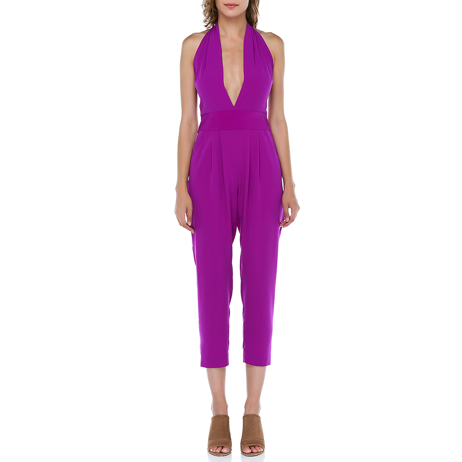 Derin göğüs dekolteli krep tulum