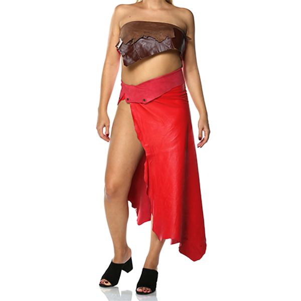 Cüretkar dekolteli ham deri mini bluz çapraz etek takım