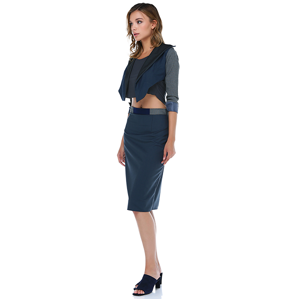 İpek kumaş göbeği açık yırtmaçlı etekli takım